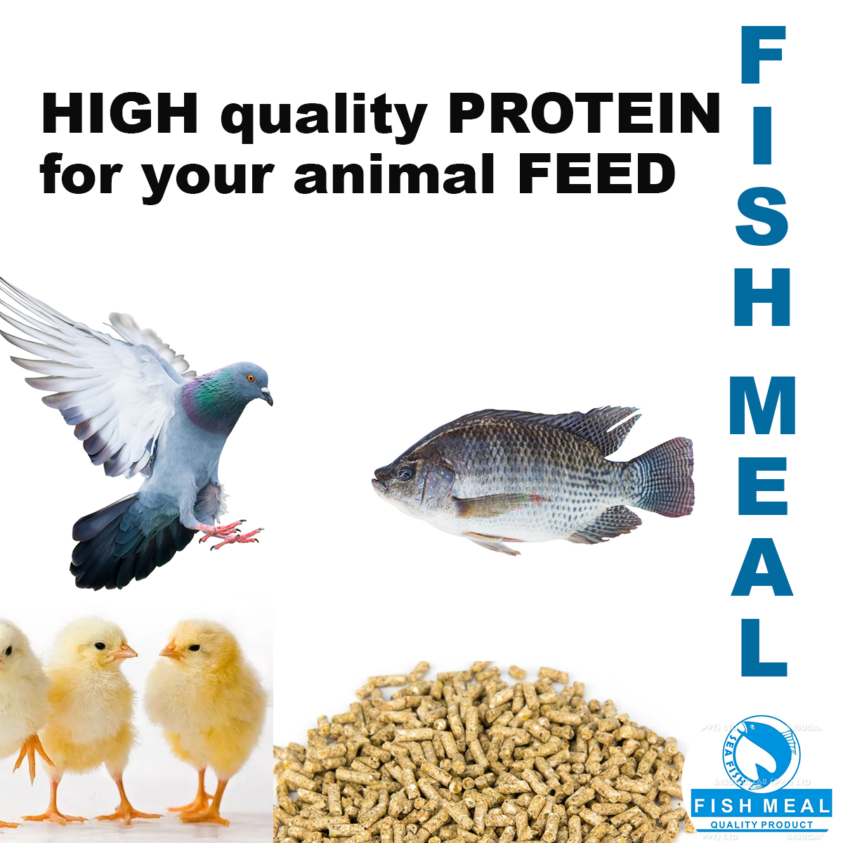 Fishmeal is an excellent source of protein for animal feeds such as poultry, fish and birds etc. It has high levels of essential amino acids such as methionine and lysine, and it also has a good balance of unsaturated fatty acids, certain minerals (available phosphorus), and vitamins (A, D, and B-complex).